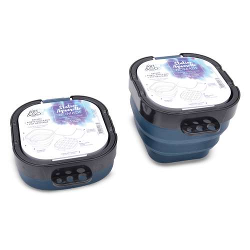 Die ART & GO Nomad Watercolour Workstation ist die perfekte Lösung für alle Künstler, die unterwegs kreativ sein möchten. Die kompakte, vielseitige und hochwertige Aquarellstation kombiniert alles, was man für das Malen im Freien braucht: einen faltbaren Pinselwascher mit integrierten Pinselhalter und eine luftdicht verschließbare Leerpalette, welche die Farben lange frisch hält.