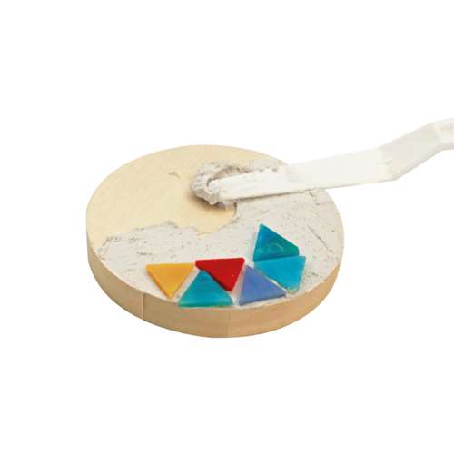 Nach dem Anmischen entsteht eine cremige, gut streichfähige Masse, in die die Mosaiksteine direkt eingesetzt werden können. Entdecken Sie eine zuverlässige Basis für präzise und kreative Mosaikgestaltungen.