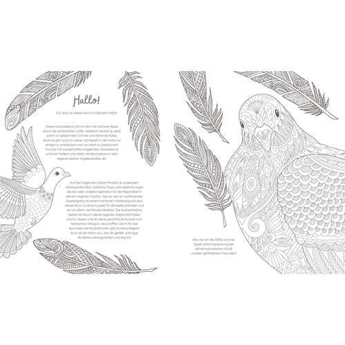 - detailreiche Illustrationen für entspannende Ausmalstunden