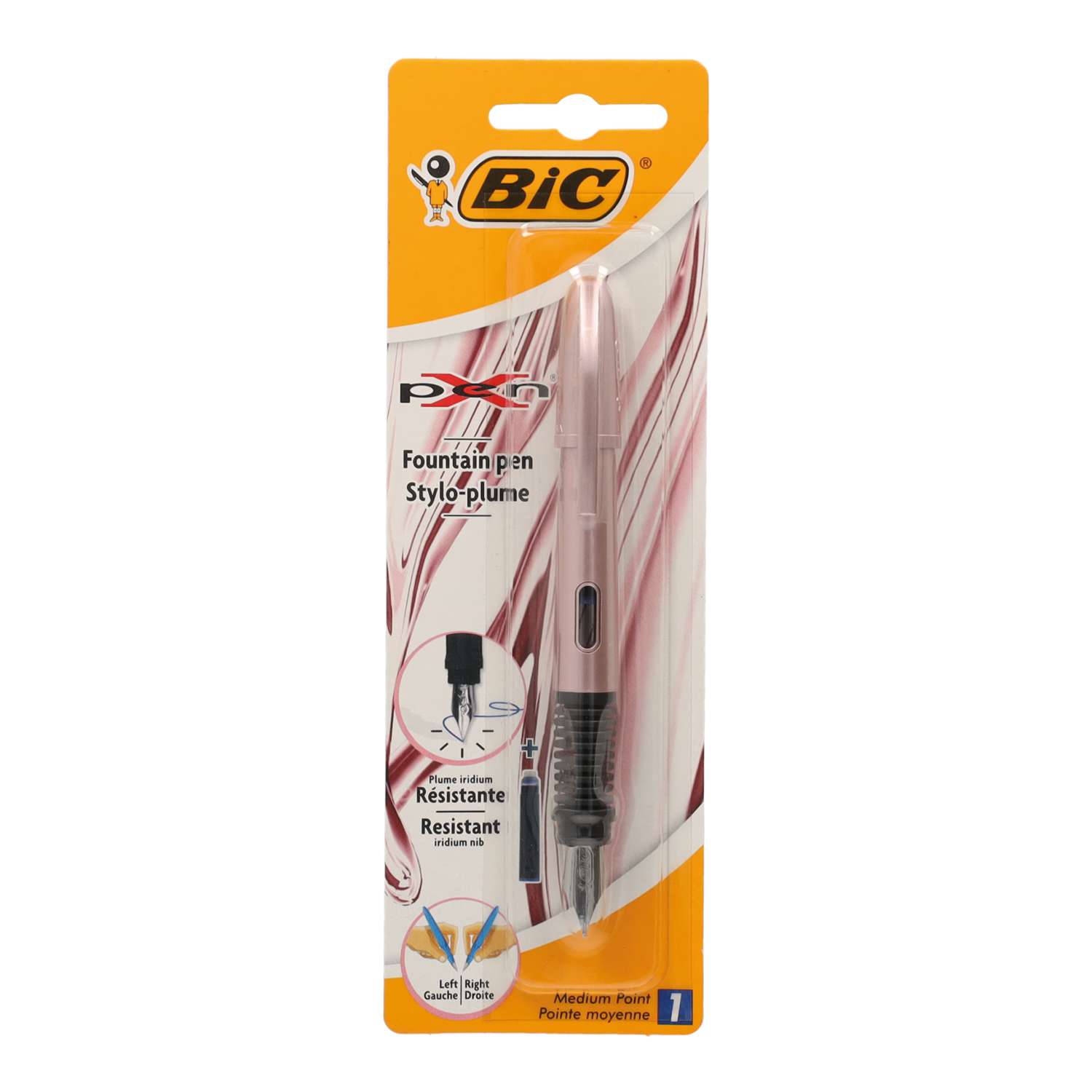 Der BIC® Xpen Füllfederhalter in Roségold kombiniert elegantes Design mit zuverlässiger Alltagstauglichkeit. Das robuste Gehäuse besitzt eine hochwertige Roségold Optik und eine transparente Sichtfensterzone die Ihnen jederzeit den aktuellen Tintenstand anzeigt. Der Füller lässt sich leicht aufschrauben und kann sowohl mit zwei kleinen Tintenpatronen als auch mit einer langen Patrone verwendet werden. Die strapazierfähige Iridium Feder sorgt für ein gleichmäßiges Schriftbild und ermöglicht ein angenehmes Schreiben über längere Zeit hinweg. Der ergonomische Dreikant Griffbereich gewährleistet eine optimale Fingerposition und unterstützt sowohl Rechts als auch Linkshänder. Dank seiner ausgewogenen Form liegt der Füllfederhalter angenehm und stabil in der Hand.