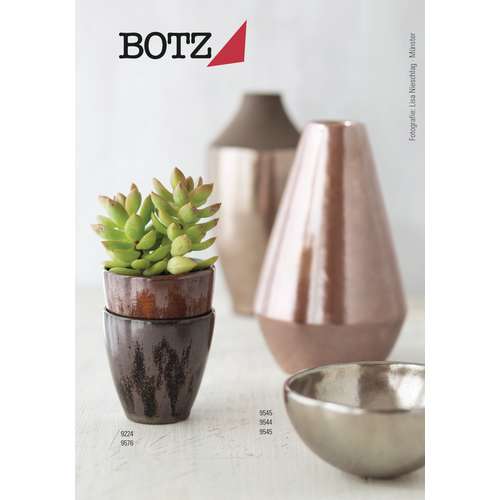 Die BOTZ FLÜSSIGGLASUR® ist ein beliebter Flüssigglasur-„Klassiker" mit rustikalem Charakter, oft steinmatt und mit Specks versetzt oder edle Metallglasuren mit irisierender Oberfläche.
