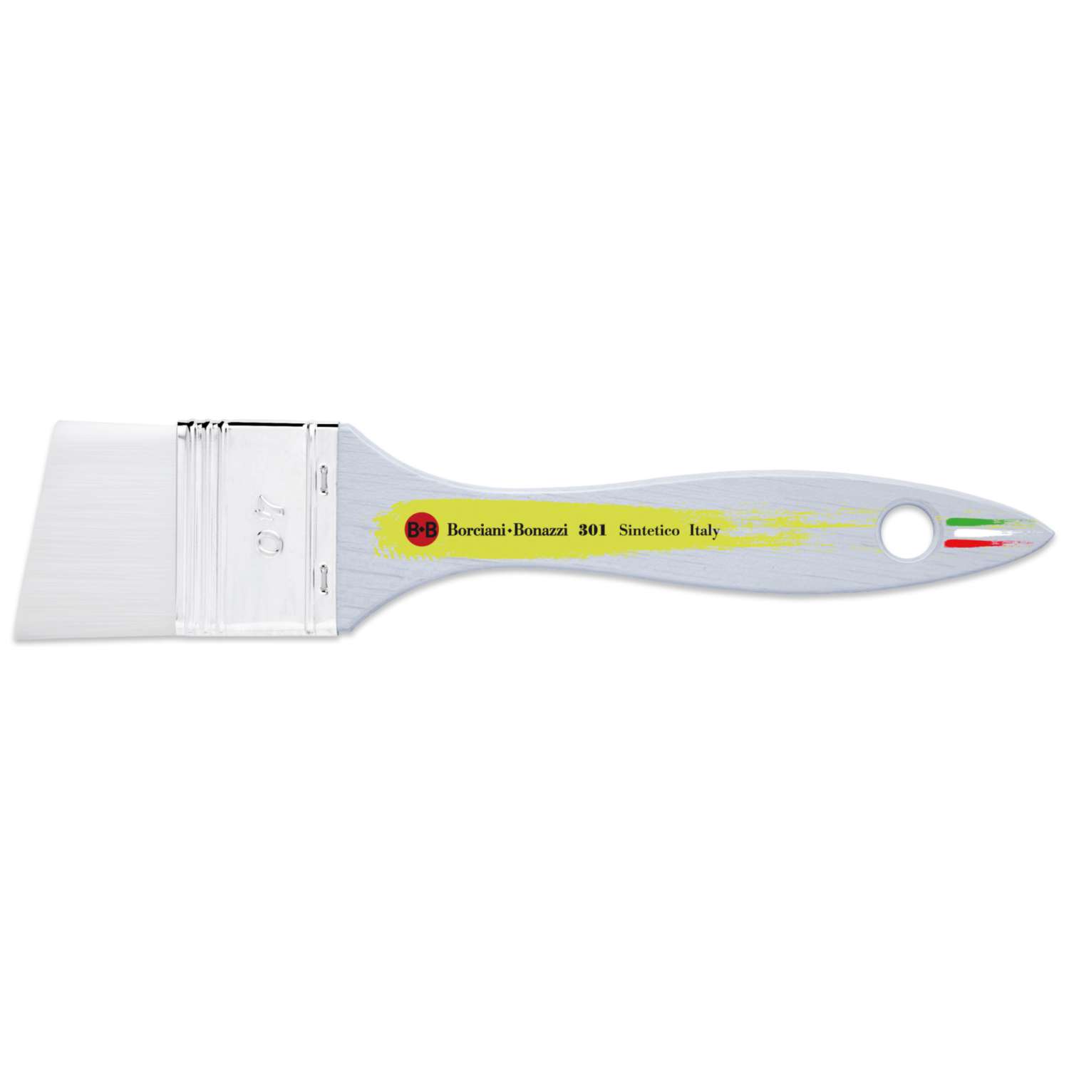 Die Borciani e Bonazzi Serie 301 Schräg-Spalterpinsel sind ideal für expressive, dynamische Farbaufträge und grafische Techniken. Das vegane, synthetische Haar ist relativ fest und nimmt nur wenig Farbe auf, wodurch flüssige Medien schnell und kontrolliert abgegeben werden. Gleichzeitig sorgt die hohe Spannkraft für präzise, sichtbare Pinselspuren – perfekt für Untermalungen, strukturierte Flächen und markante Effekte.
