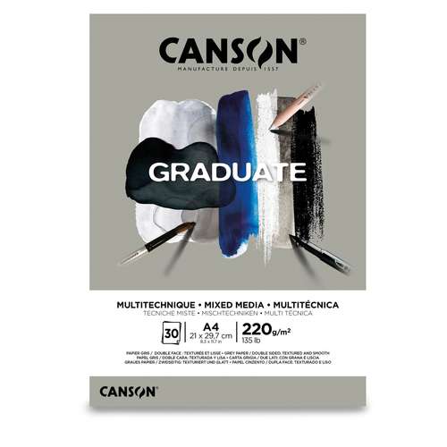 Die CANSON® Graduate Mixed Media Blöcke bieten 30 Blatt widerstandsfähiges, zweiseitiges Papier. Ideal für Mixed Media (Bleistift, Filzstift Aquarell, Acryl, Acrylmarker etc.).
