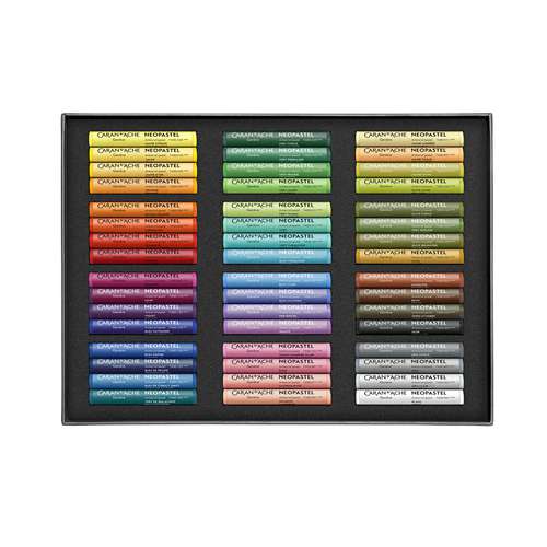 CARAN D'ACHE Neopastel Ölpastellkreiden-Sets sind hochwertige Pastellkreiden. Sie sind weich und geschmeidig, haben eine große Deckkraft, sind lichtecht, stauben nicht und brauchen kein Fixiermittel. Die CARAN D'ACHE Neopastel Ölpastellkreiden sind von außerordentlicher Leuchtkraft und lassen sich unbegrenzt zu feinsten Nuancen miteinander mischen. Dank dem besonderen Bindemittel der CARAN D'ACHE Neopastel Ölpastellkreiden kann der Farbauftrag mit den Fingerspitzen differenziert verteilt und verrieben werden. CARAN D'ACHE Neopastel Ölpastellkreiden eignen sich sowohl für die lockere Skizze als auch für das ausgearbeitete Bild, in freistehendem Schraffurstrich wie in geschlossener, nuanciert gemischter Fläche. Die Pastellkreide ist zylindrisch, Länge 6,8 cm, d 11 mm. Die