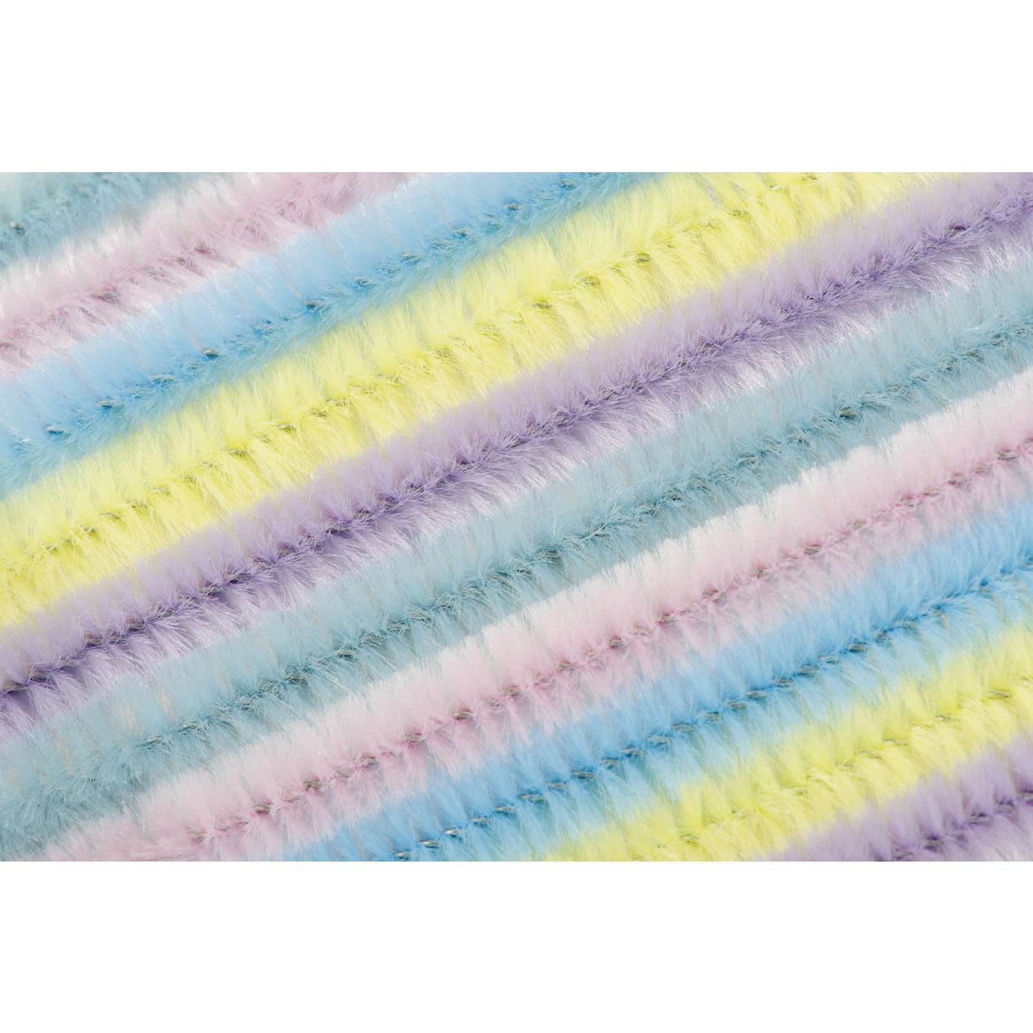 Flauschig-weiche, biegbare Pfeifenreiniger in pastell Farben sortiert. Länge: 50 cm; Stärke: 8 mm. Inhalt: 10 Stück in verschiedenen Farben sortiert. Material: 100 % Polyester.