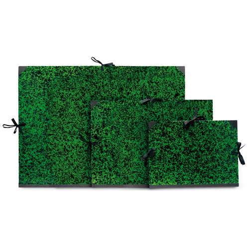 Zeichenmappe in klassischem, französischem Design. Die Zeichenmappe "Annonay" ist aus äußerst stabiler Graupappe gefertigt und mit grün-schwarzem Dekorpapier überzogen. Die Mappe ist säurefrei und ermöglicht somit auch längere Aufbewahrungszeiten ohne dabei den Inhalt zu schädigen. Zudem ist die Zeichenmappe glanzfolienkaschiert und dadurch schmutzabweisend. Ecken und Rücken der Zeichenmappe sind mit Leinen verstärkt, sodass diese Aufbewahrungsmappe besonders stabil ist. Die Zeichenmappe wird mit 3 Leinenbändern verschlossen. Die Aufbewahrungsmappe ist ohne Innenklappen.