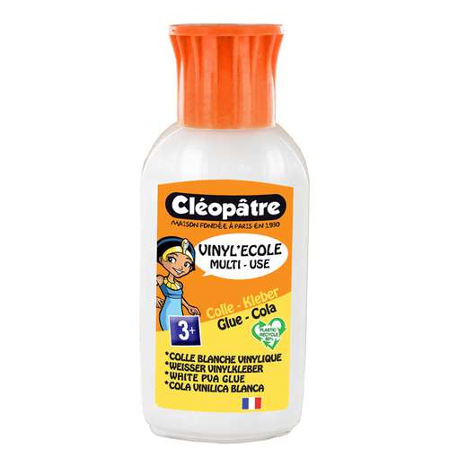 Cléopâtre Vinyl'Ecole ist ein weißer Vinylkleber speziell für Kinder. Er eignet sich ideal für den Einsatz in Schulen und Kindergärten. Der Vinylkleber ist sehr vielseitig für verschiedene Hand- und Bastelarbeiten einsetzbar. Er klebt: