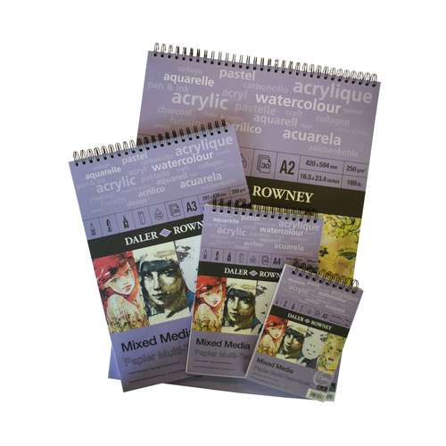 DALER-ROWNEY Spiralblock Mixed Media, 250 g/qm, naturweiß, 30 Blatt, säurefrei. Der Zeichenblock mit Spiralbindung eignet sich ideal für viele Trocken- und Nasstechniken. Erhältlich in mehreren Formaten.