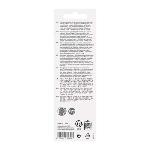 Dieses Set umfasst den Faber-Castell Precision Eraser Pen sowie vier passende Ersatzradierer. Der Radierstift ist für präzise Korrekturarbeiten konzipiert und eignet sich für feine Linien, technische Zeichnungen und detaillierte Skizzen. Die Radiermine wird über einen Drehmechanismus herausgeführt und ermöglicht kontrolliertes und punktgenaues Radieren. Die vier Ersatzradierer entsprechen dem kompatiblen System des Precision Eraser Pens und können schnell ausgetauscht werden. Die Lieferung erfolgt in einer stabilen Kunststoffhülle.