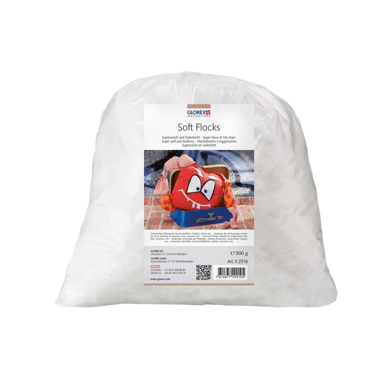 Superweich und federleicht - das perfekte Füllmaterial für Ihre Nähprojekte. GLOREX Soft-Flocks sind hochwertige Faserbällchen zur universellen Füllung von selbstgenähten Kissen oder für extraweiche Kuscheltiere.