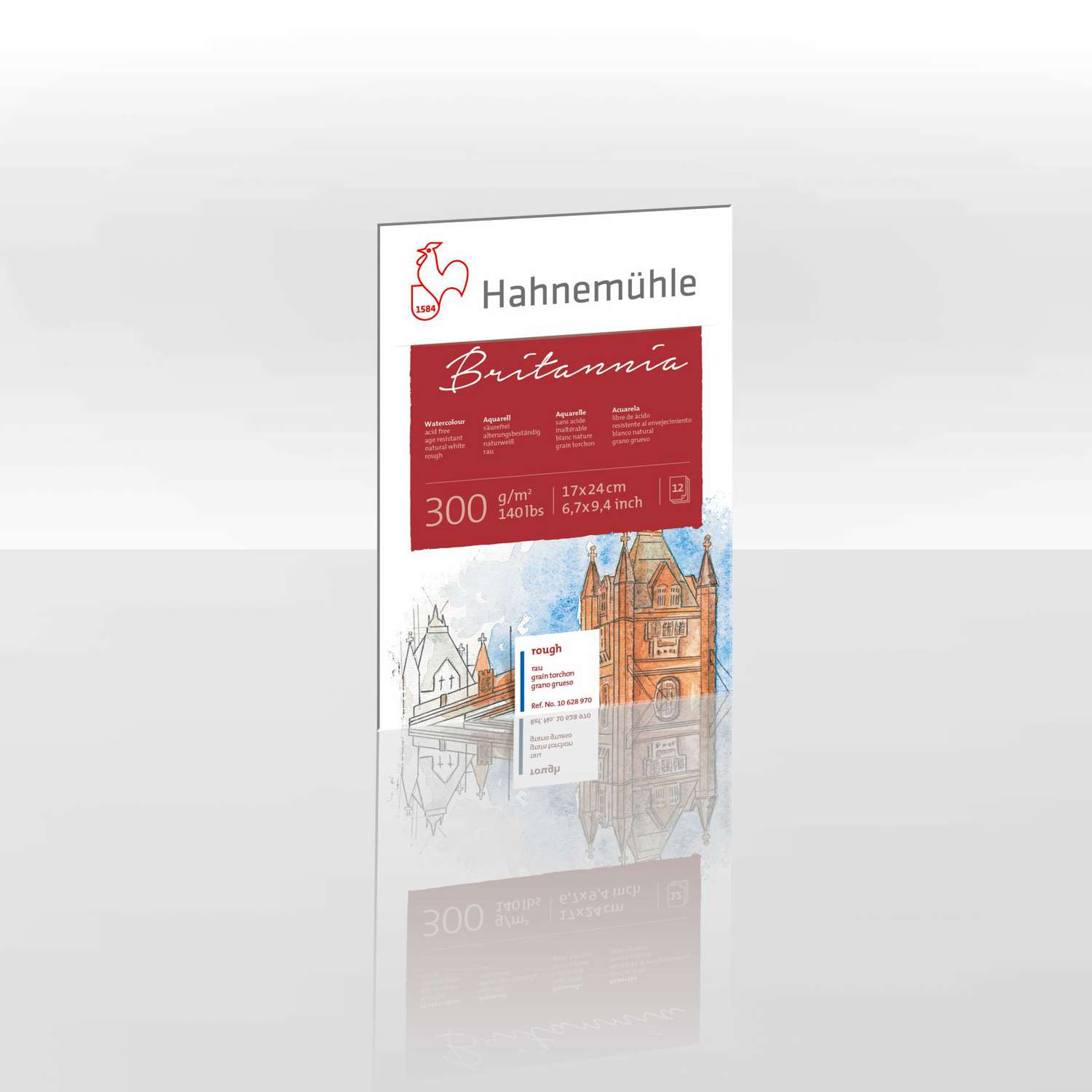 HAHNEMÜHLE "Britannia" Aquarellblock ist naturweiß, 300 g/qm, sehr planstabil, säurefrei und alterungsbeständig. Die schweren Hahnemühle Aquarellkartons bieten sich für Anfänger und Fortgeschrittene gleichermaßen an. – Preis pro Block.