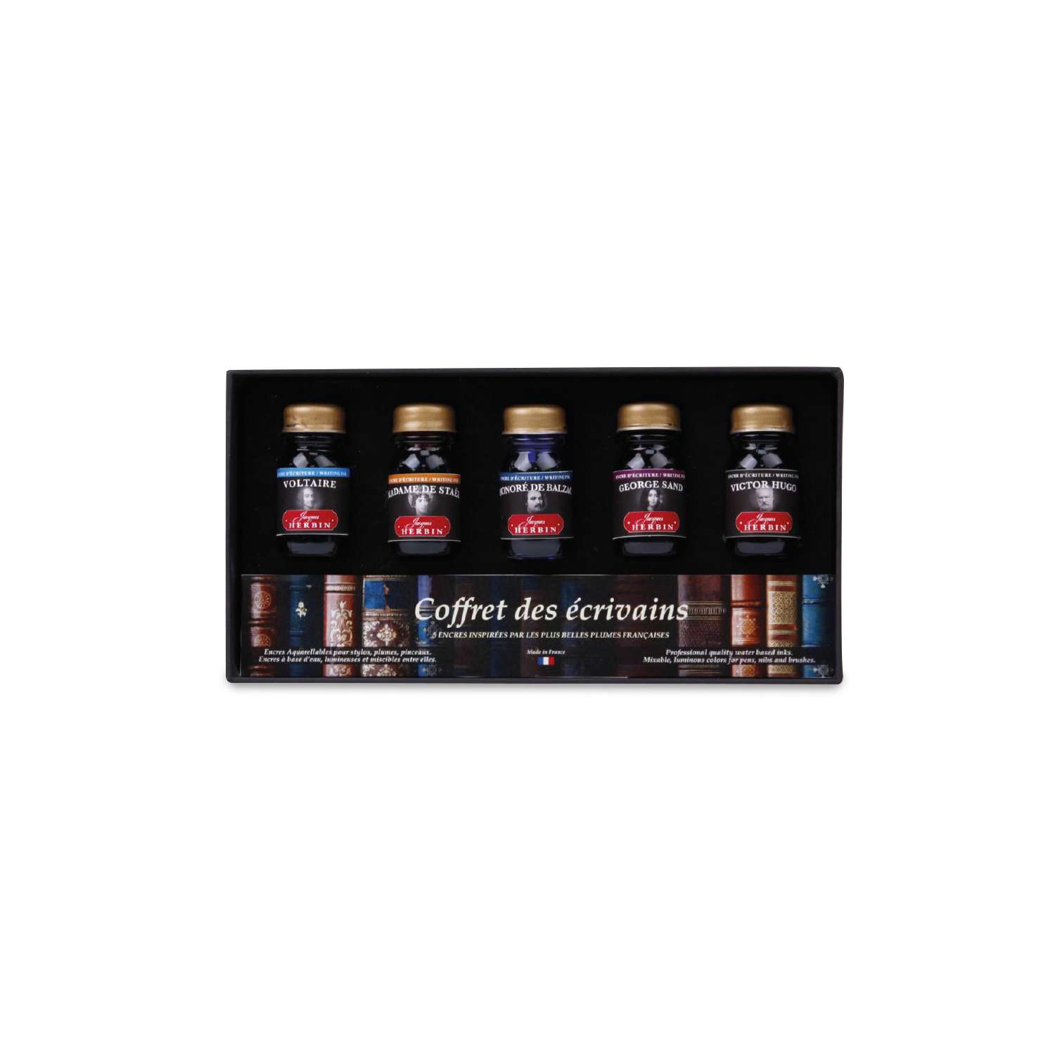 Das HERBIN Schreibtinte 5er-Set enthält eine Farbauswahl, die thematisch von großen französischen Schriftstellern inspiriert wurde.
