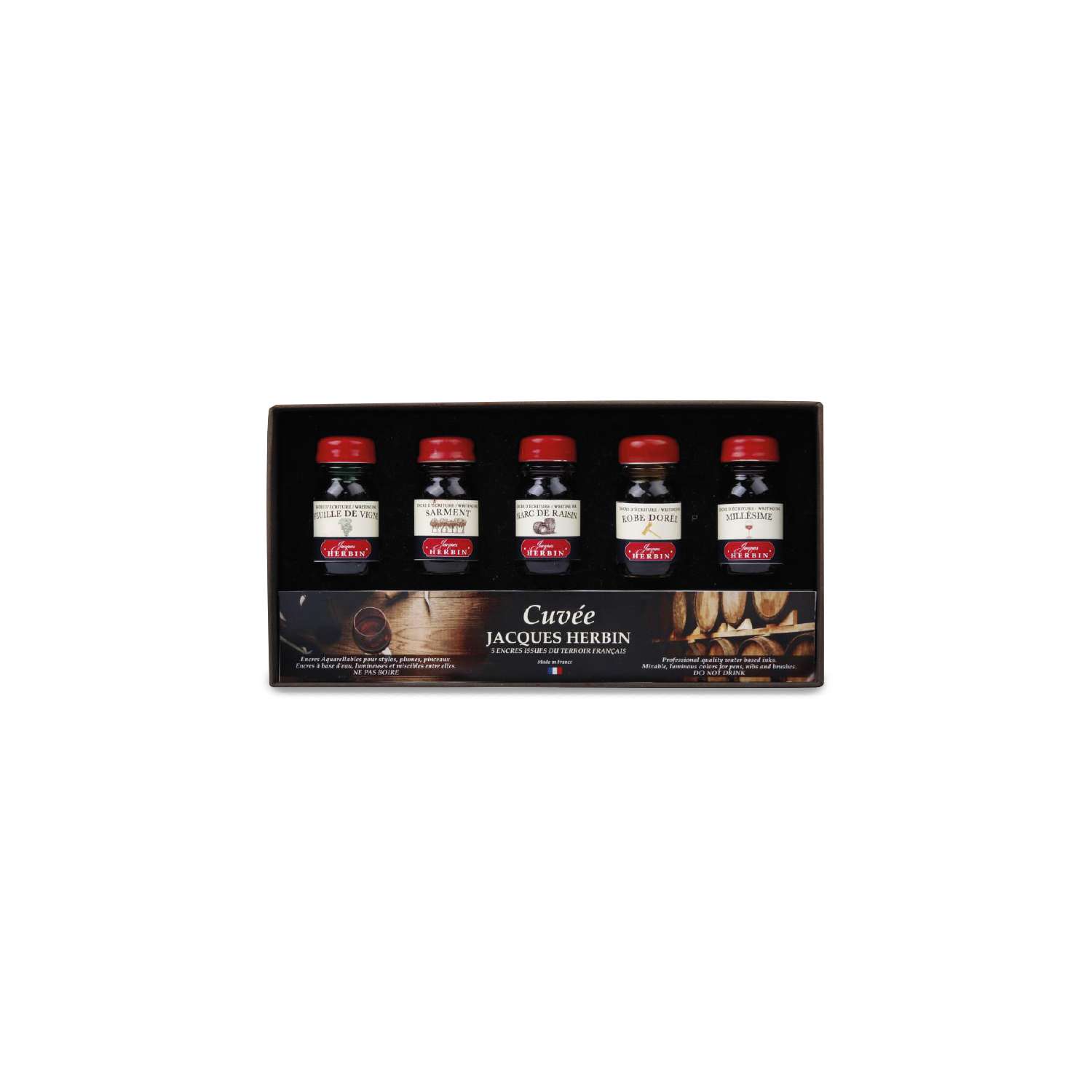 Das HERBIN Set enthält 5 x 10 ml Schreibtinte, die thematisch von Wein & Weinanbau inspiriert wurde.