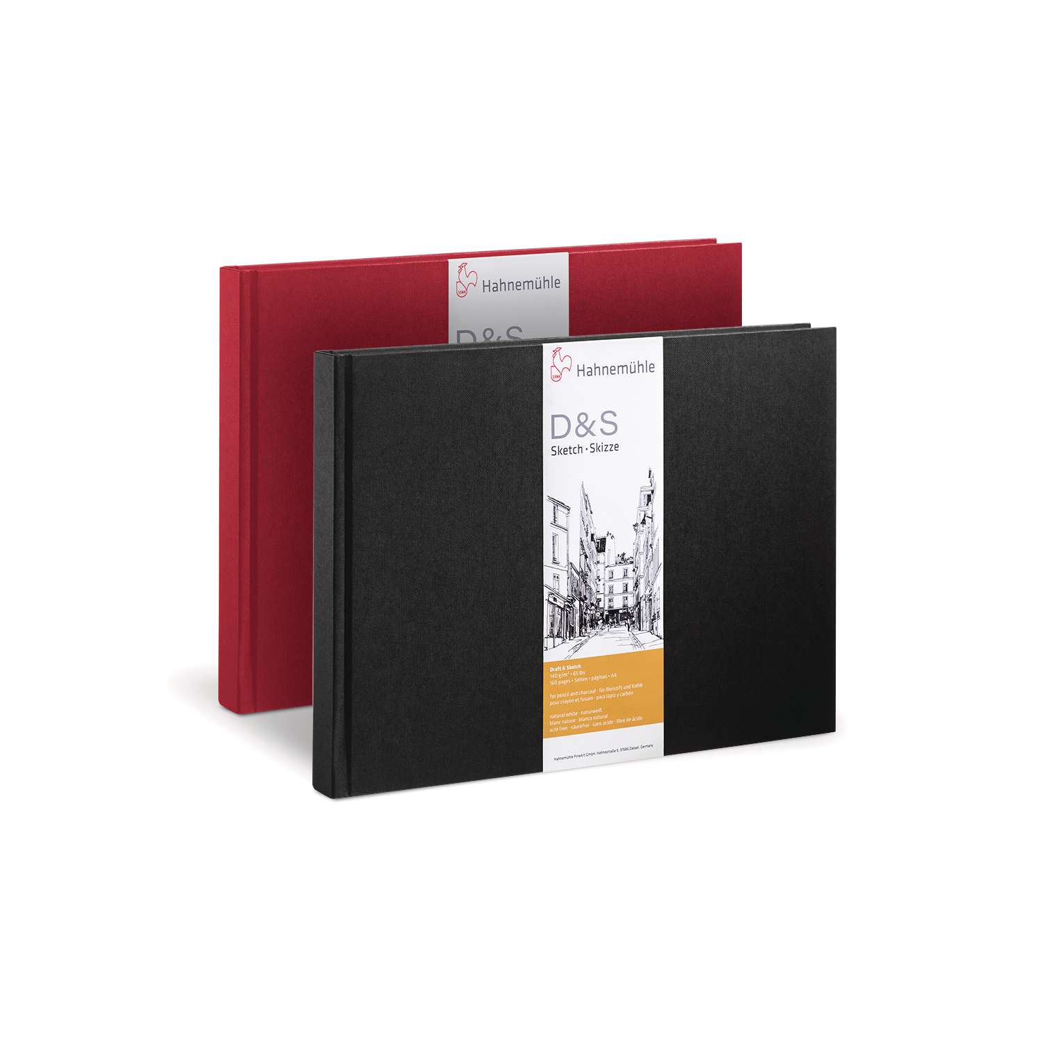 Das günstige HAHNEMÜHLE D&S Skizzenbuch mit solider Fadenheftung und stabilem Einband ist ideal für Vielverwender und Künstler mit begrenztem Budget. Das rote Einlegeband sorgt für zusätzlichen Komfort beim Auffinden einer Seite. Auch für Arbeiten mit feuchten Farben geeignet. Erhältlich in Rot und Schwarz und jeweils im Hoch- und Querformat sowie quadratisch (nur in Schwarz). Säurefreies, naturweißes Skizzenpapier, 140 g/qm, mit 1,5-fachem Volumen. Inhalt 80 Blatt / 160 Seiten. - Preis pro Buch.