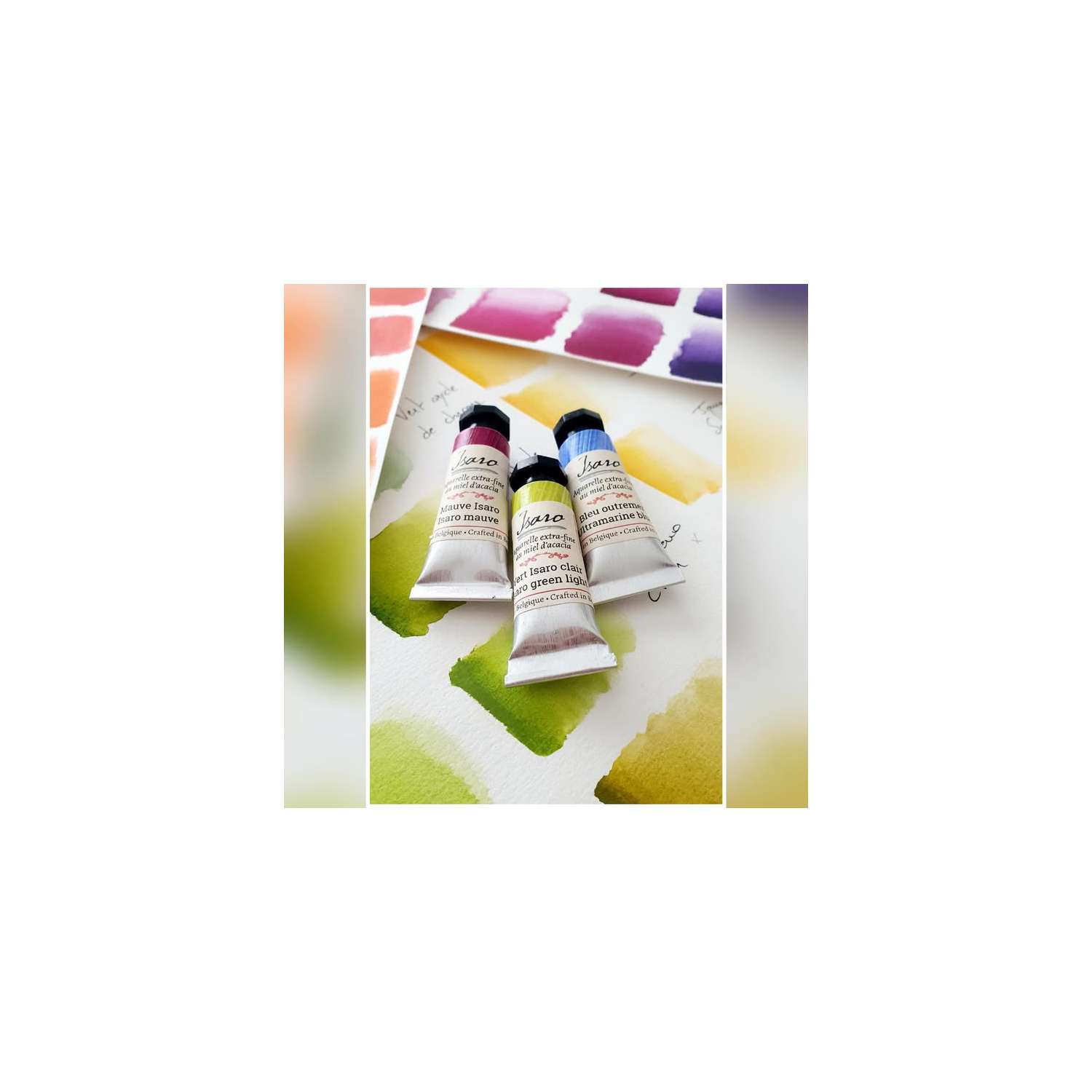 Die Isaro Extra-feinen Aquarellfarben sind hochwertige Künstlerfarben aus belgischer Manufaktur. Sie zeichnen sich durch eine außergewöhnliche Pigmentqualität und eine sorgfältige Rezeptur aus Gummi arabicum, Honig, pflanzlichem Glyzerin und destilliertem Wasser aus. Diese Kombination verleiht den Farben eine geschmeidige Konsistenz, hervorragende Verarbeitungseigenschaften und eine besonders hohe Transparenz.