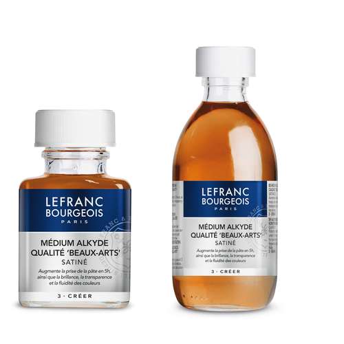 LEFRANC & BOURGEOIS Alkyd-Harz Malmittel verbessert Fließfähigkeit und Transparenz von Ölfarbe, während gleichzeitig die Trocknungszeit erheblich verkürzt wird. Ebenfalls ein ideales Lasurmittel. Erhältlich in 75 ml und 250 ml Flaschen.