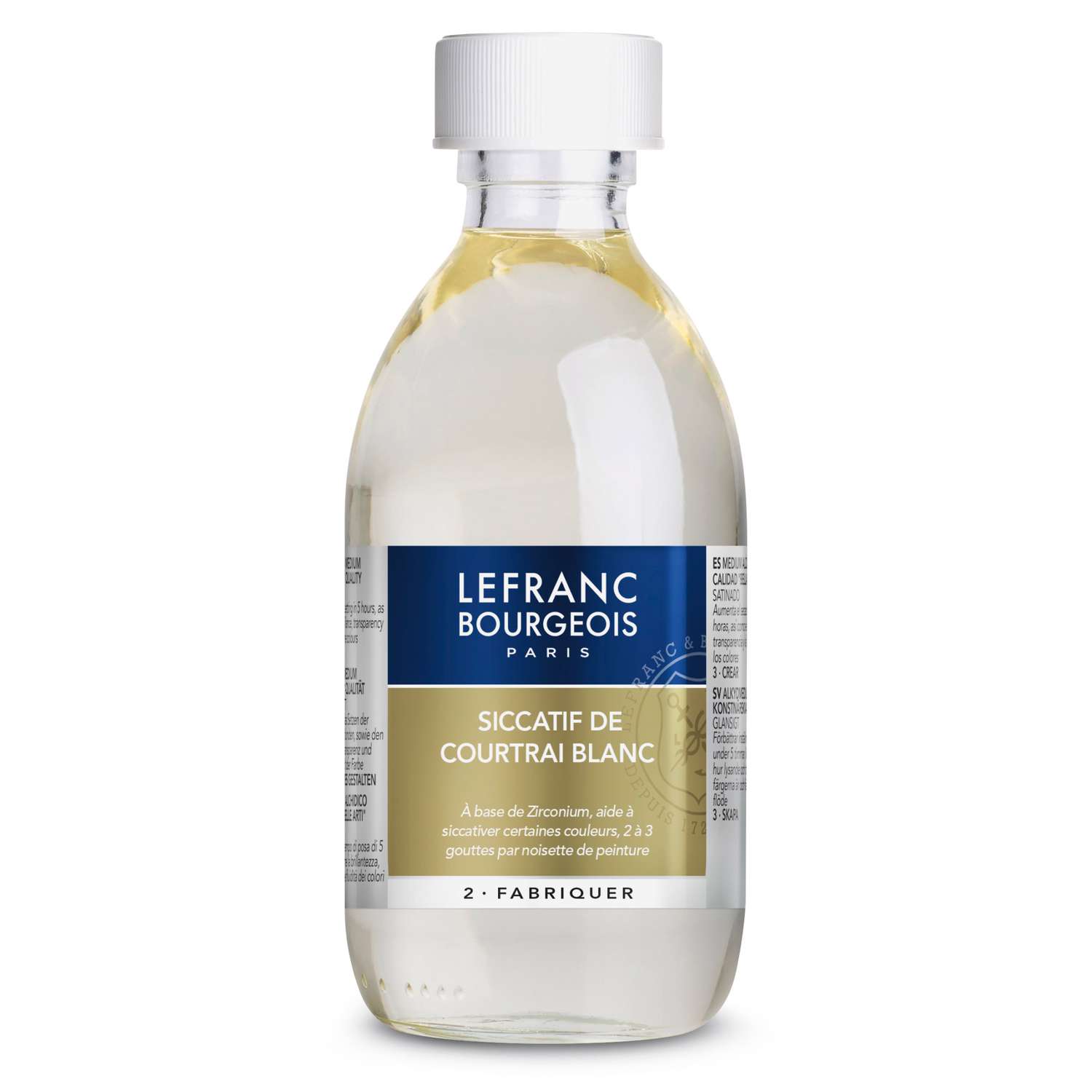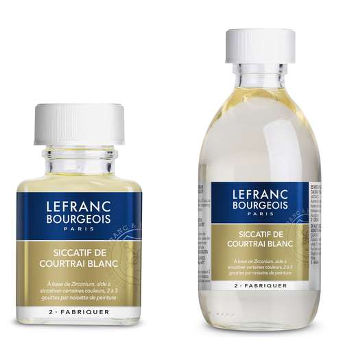 Traditionelle Malmittel aus dem Hause Lefranc&Bourgeois. Das Sikkativ hat eine milde Wirkung, die nicht die oberflächliche Trocknung beschleunigt, sondern die komplette Aushärtung. Da es farblos ist, verändert es auch die hellen Farben nicht. Erhältlich in 75ml und 250 ml. Preise pro Flasche.