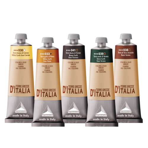 Die Terre Grezze d'Italia Farbtöne sind harmonische, warme Erdtöne. Diese Farben stammen von den traditionellen Pigmenten, die in verschiedenen italienischen Malschulen verwendet worden. Die Paste ist dicker und die Körnung des Pigments ist größer als bei herkömmlichen Ölfarben.