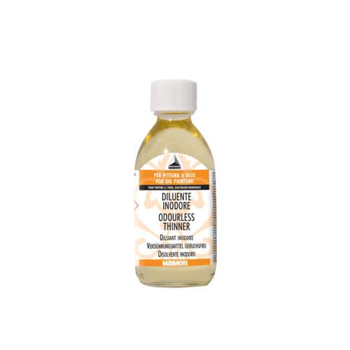 Das MAIMERI Verdünnungsmittel ist ein hochwertiges Hilfsmittel für die Ölmalerei. Es basiert auf raffinierten, aromatenfreien Erdöldestillaten und ist nahezu geruchlos. Mit seiner moderaten Lösungskraft verdünnt es Ölfarben zuverlässig, ohne die Konsistenz stark zu verändern. Dadurch ist es besonders geeignet für Arbeiten in geschlossenen Räumen oder für Künstler, die empfindlich auf starke Lösungsmittel reagieren. Das Verdünnungsmittel kann sowohl zum Strecken der Farbe als auch zur Reinigung von Pinseln und Malwerkzeugen eingesetzt werden.
