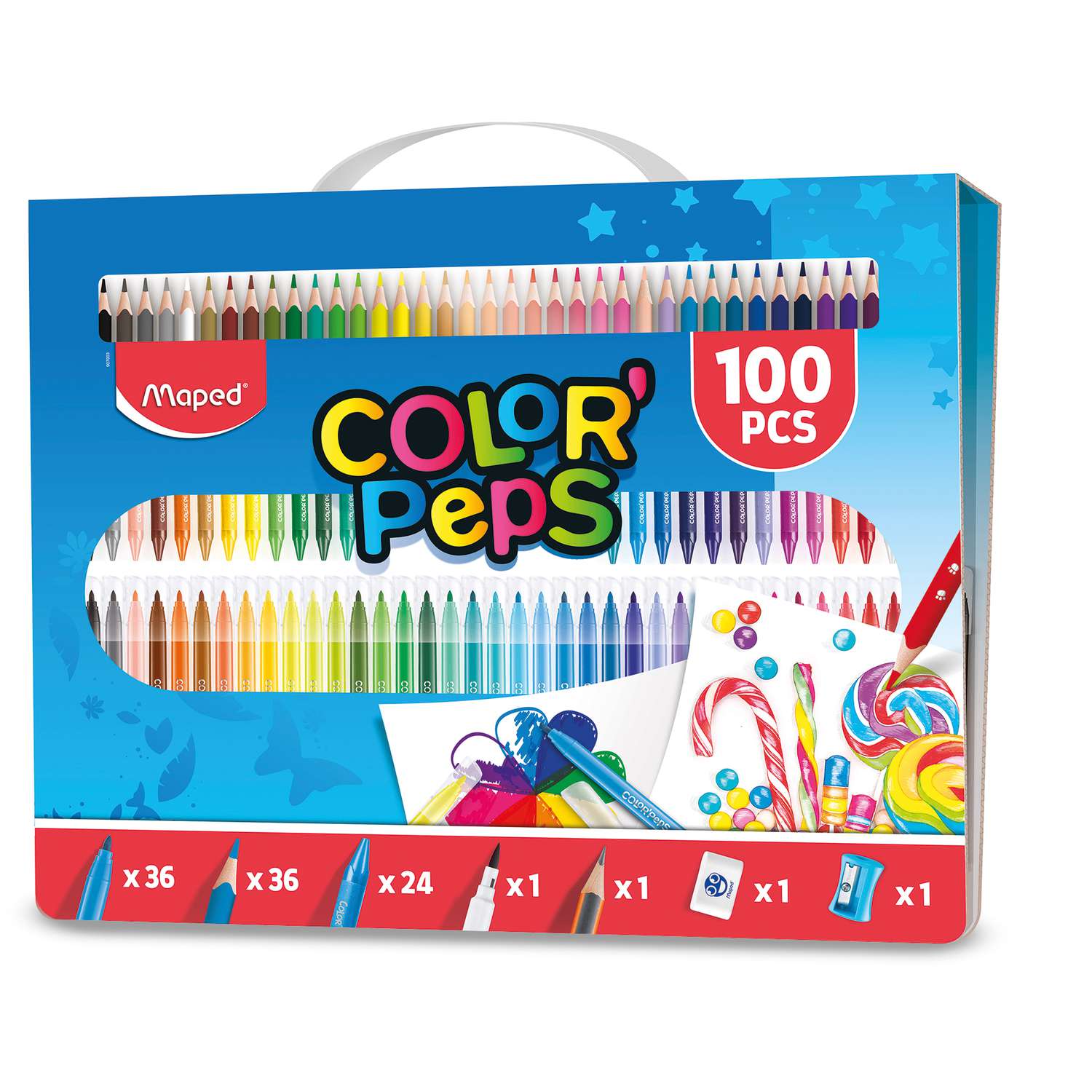 Das Maped® COLOR'PEPS 100er Kreativset bietet alles, was kleine Künstler brauchen, um ihre Fantasie auszuleben. Mit insgesamt 100 hochwertigen Zeichen- und Malutensilien in einer praktischen Tragebox ist dieses Set die perfekte Geschenkidee und lädt Kinder ab 4 Jahren zum kreativen Gestalten ein.