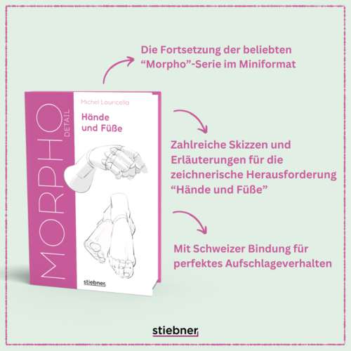 Michel Lauricella hat sich mit seiner »Morpho«-Serie in Zeichenkreisen einen Namen gemacht. Mit seinen Erläuterungen macht er das anatomisch korrekte Zeichnen, das häufig auch erfahrene Zeichner:innen vor Herausforderungen stellt, spielend leicht. Das handliche Format und die Schweizer Bindung des »Morpho Detail« garantieren bestes Aufschlagverhalten und maximale Praktikabilität beim Menschen zeichnen lernen – auch unterwegs.