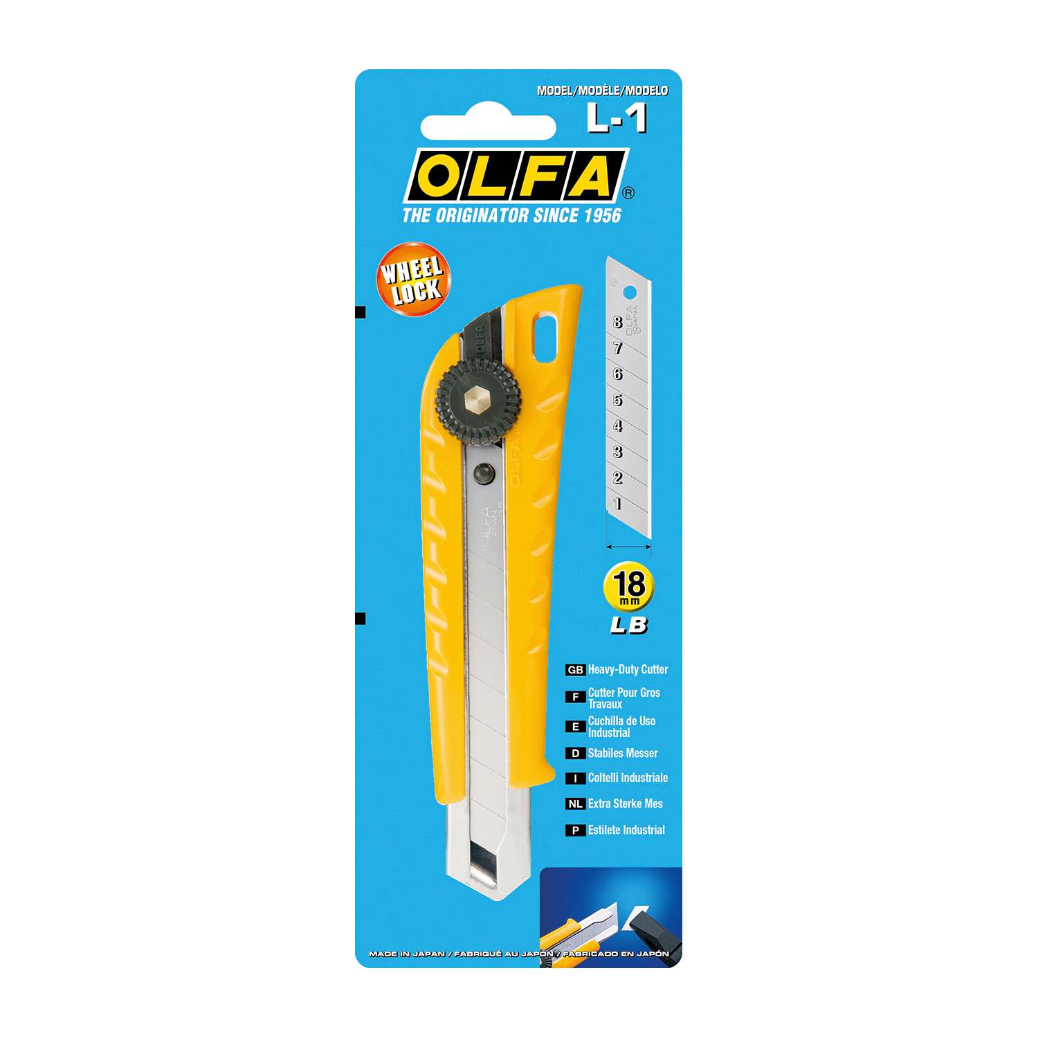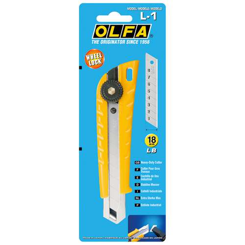 OLFA® L-1 Universal-Cutter mit 18-mm-Abbrechklinge. Absoluter Bestseller! Stabiler Profi-Cutter für alle Einsätze, mit stufenloser Klingenfeststellung durch Rändelschraube. Kunststoffgriff mit Metallführung.
