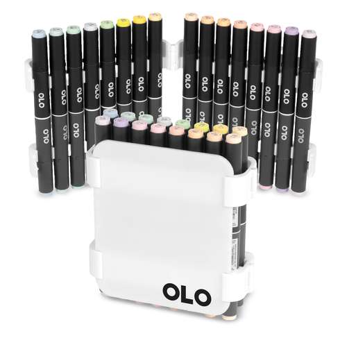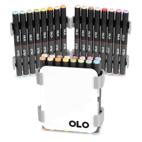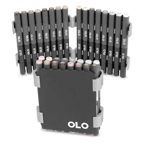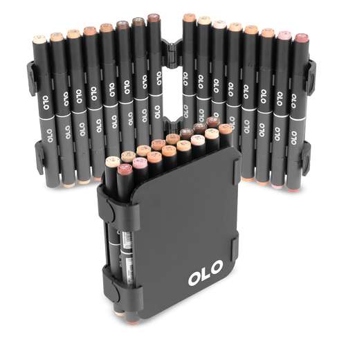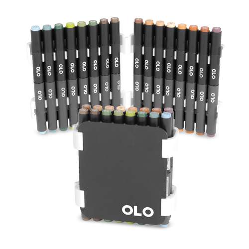 OLO™ Carry Case Small Markersets mit 32 Halbmarkern, kombinierbar zu 16 doppelseitigen Alkoholmarkern mit Pinsel- und Keilspitze. Mehr