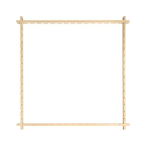 Es stehen zwei Ausführungen zur Verfügung. Die größere Ausführung besitzt eine Rahmenlänge von 106,5 cm und ermöglicht eine maximale Spanntuchbreite von 99,5 cm. Die kleinere Ausführung verfügt über eine Rahmenlänge von 74 cm und unterstützt eine maximale Spanntuchbreite von 67,5 cm. Beide Varianten bieten eine stabile Grundlage für textile Arbeiten und eignen sich für kreative Projekte im Hobbybereich oder im Atelier.