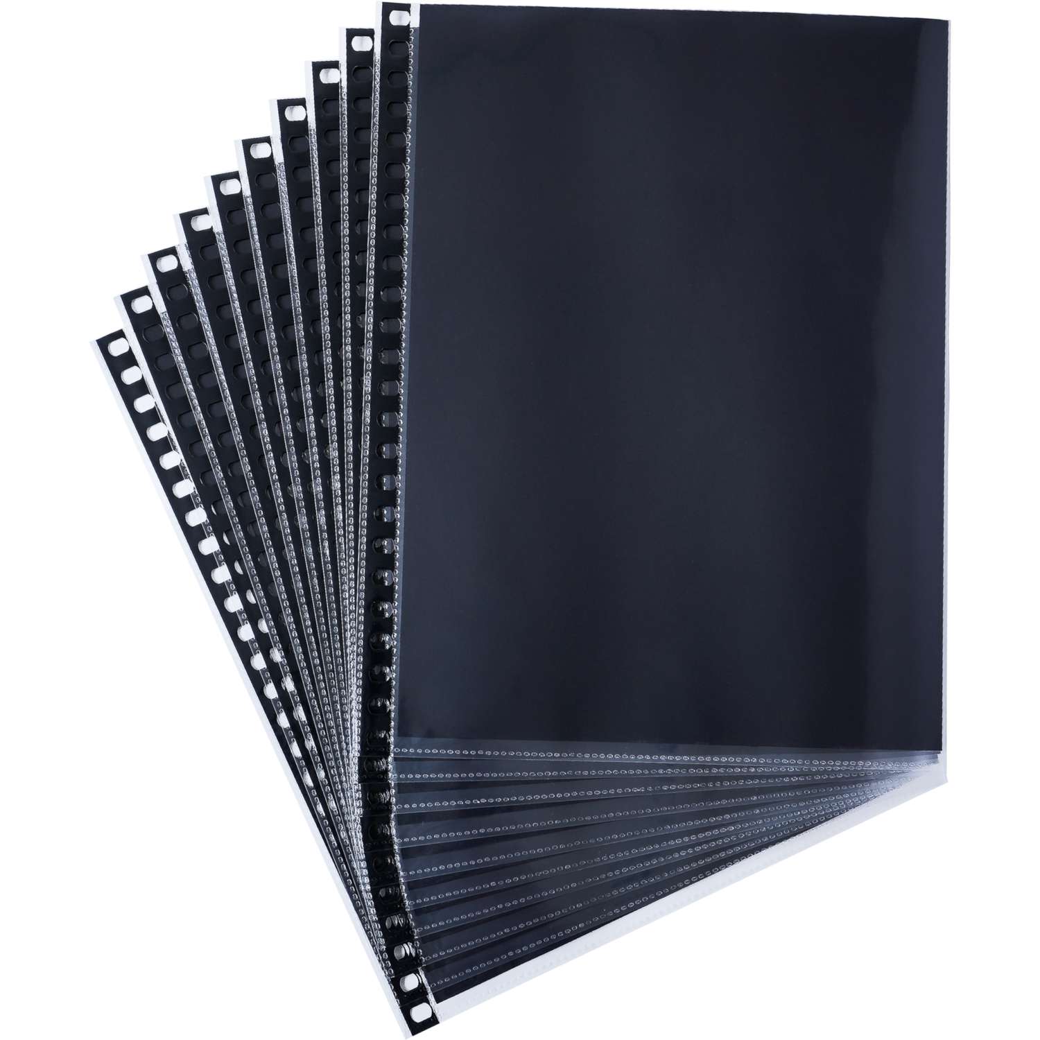 Für Multiring-Lochung. Hochtransparente Präsentationshülle aus Polypropylen mit schwarzer, säurefreier Papiereinlage. Mindestmenge 3 Hüllen pro Größe.
