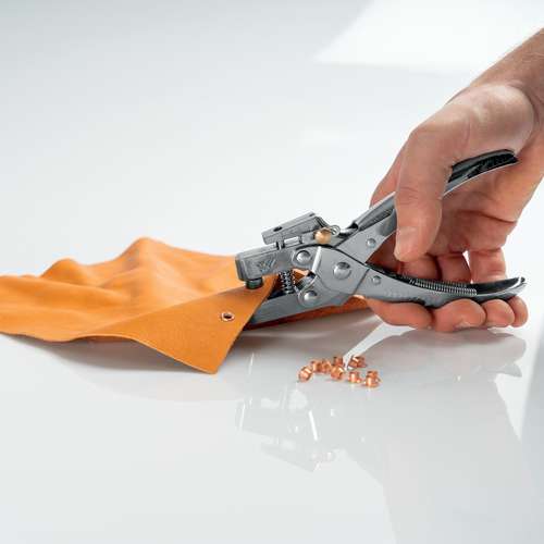 Die Rapid® RP05 Ösenzange ist ein robustes Werkzeug für das Anbringen von Ösen mit 4 mm Durchmesser. Sie kombiniert eine integrierte Lochstanzfunktion mit einer stabilen, verchromten Stahlkonstruktion und eignet sich für Textilien, Leder, Papier, Karton und weitere flexible Materialien. Die langen Griffe sorgen für eine gute Kraftübertragung, während die praktische Griffverriegelung eine sichere Aufbewahrung ermöglicht. Durch die Kombination aus Ösenzange und 100 passenden Ösen ist das Set sofort einsatzbereit und ideal für Reparaturen, kreative Arbeiten sowie vielseitige Bastel- und Handwerksprojekte. Die Ösenzange misst 23 mm in der Breite, 265 mm in der Höhe und 143 mm in der Tiefe und hat ein Gewicht von 0,3 kg.