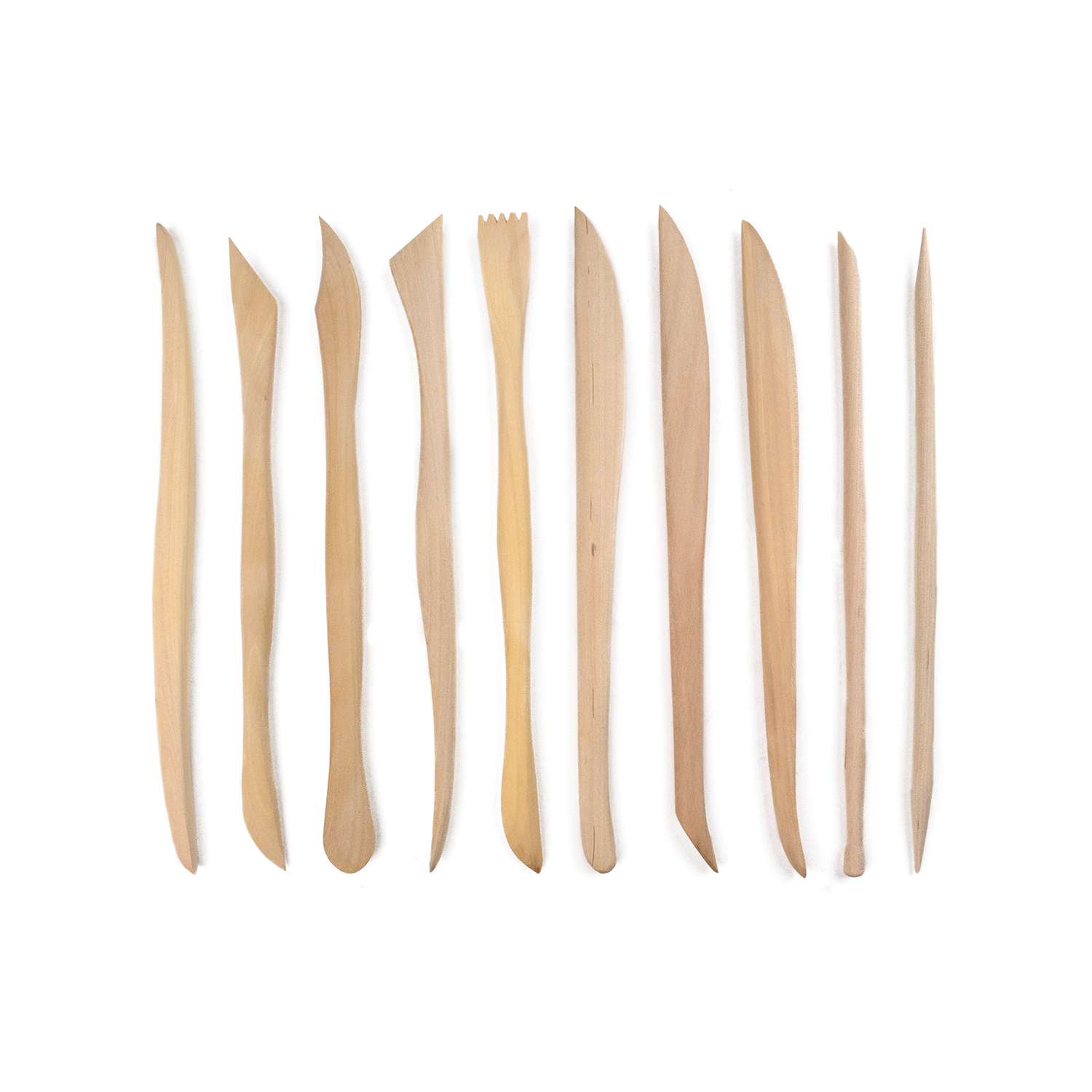 Dieses praktische Set von Royal & Langnickel® enthält zehn Modellierwerkzeuge aus Holz mit einer Länge von jeweils ca. 20 cm. Die Werkzeuge liegen angenehm in der Hand und ermöglichen präzises Arbeiten bei unterschiedlichsten Modellier- und Gestaltungsaufgaben.