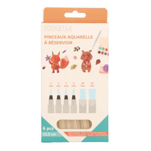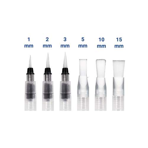 - 6 Wassertankpinsel in verschiedenen Spitzenformen und Größen (1 mm bis 15 mm)