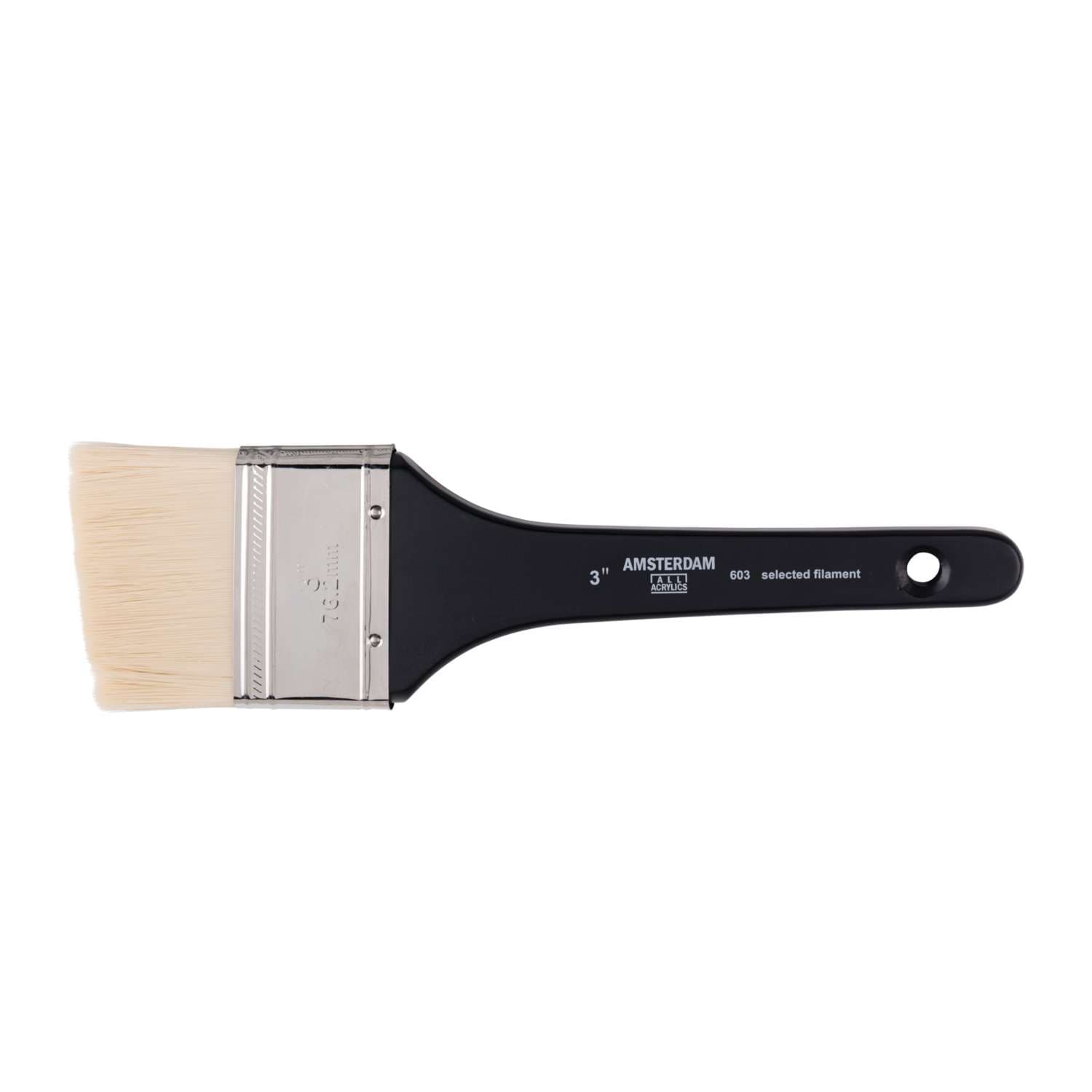 Die AMSTERDAM Universalpinsel der Serie 603 bieten Ihnen Arbeiten in einer ergonomischen Position. Durch das abgeschrägte Haarbündel eignen sie sich auch ideal für die Bemalung von größeren Flächen.