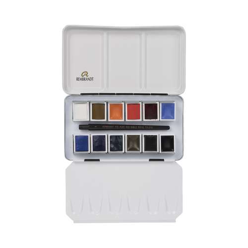 Die passende Farbauswahl für Ihre Lieblingsmotive: Der Metall-Aquarellkasten enthält 12 Näpfchen der beliebten Künstler-Aquarellfarbe von Rembrandt. Er enthält zusätzlich eine herausnehmbare Mischpalette und einen hochwertigen Rotmarderhaar-Aquarellpinsel. Das Set wird im schönen Karton-Etui geliefert.