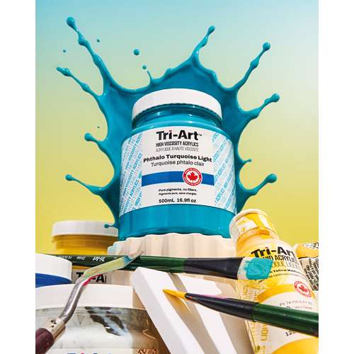 Die Inhaltsstoffe der HIGH VISCOSITY Acrylfarbe von Tri-Art™ sind so rein wie möglich. Es werden ausschließlich die besten Pigmente in höchstmöglicher Konzentration verwendet – Füllstoffe oder Extender kommen dabei nicht zum Einsatz. Dadurch bleiben die charakteristischen Eigenschaften und die Farbintensität – das Chroma – der Pigmente vollständig erhalten. Das Bindemittel besteht aus einer 100 % reinen Acrylemulsion.
