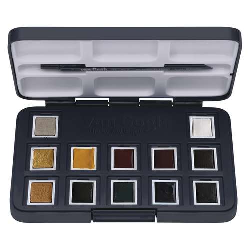 - 12 halbe Näpfchen Van Gogh Aquarellfarbe in 9 Grund- und 3 Metallic-Farbtönen