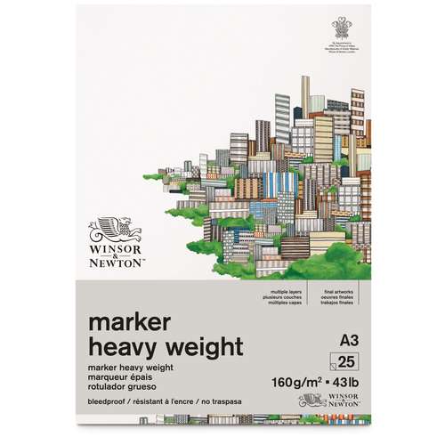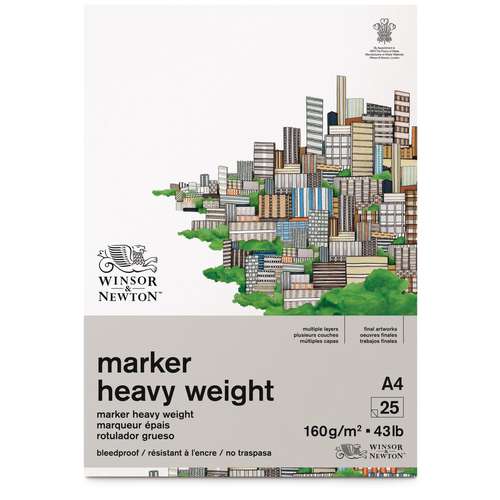Der WINSOR & NEWTON™ Markerblock enthält 25 Blatt besonders glattes und 160 g/qm schweres Papier. Das Markerpapier wurde speziell für die Anwendung mit Markern auf Alkoholbasis konzipiert. Optimal geeignet für WINSOR & NEWTON ProMarker™.