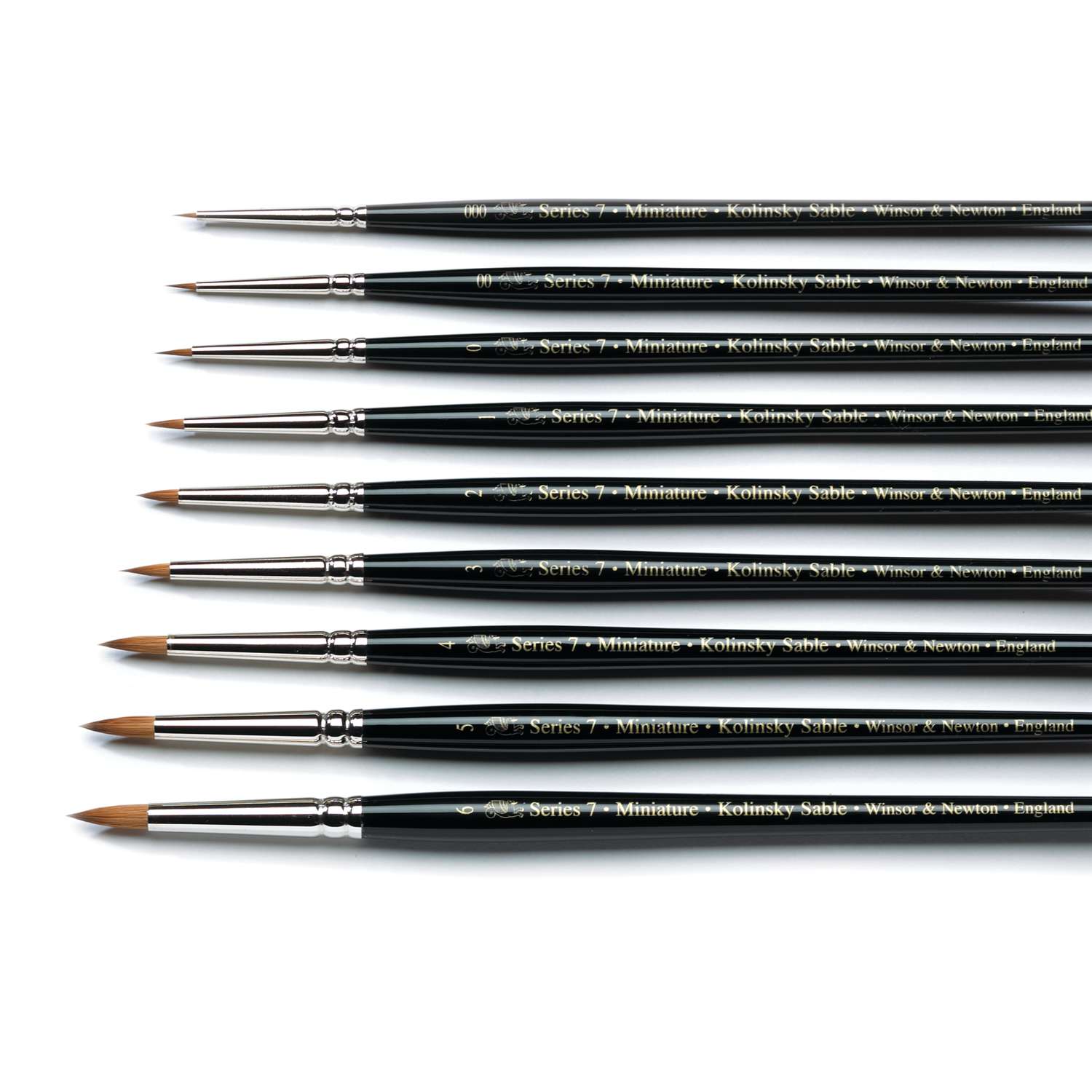 Der feinste Pinsel der Welt für Aquarellfarben. Die Winsor & Newton™ Serie 7, Miniatur eignet sich hervorragend für punktuelles Arbeiten und das Malen feiner Linien. Die in diesen Pinseln verwendete Haarlänge ist viel kürzer, damit nur die Spitze die Papieroberfläche berührt, wenn der Künstler an sehr kleinen Bildern malt. Diese qualitativ hochwertigen Miniaturpinsel gibt es in 9 Größen von 000 bis Nummer 6 und sie bestehen aus den gleichen, hochwertigen Kolinsky-Rotmarderhaaren wie die Standardpinsel. Kurzer, schwarz polierter Stiel mit nicht-korrodierender, nahtloser Messingzwinge. – Preis pro Stück.