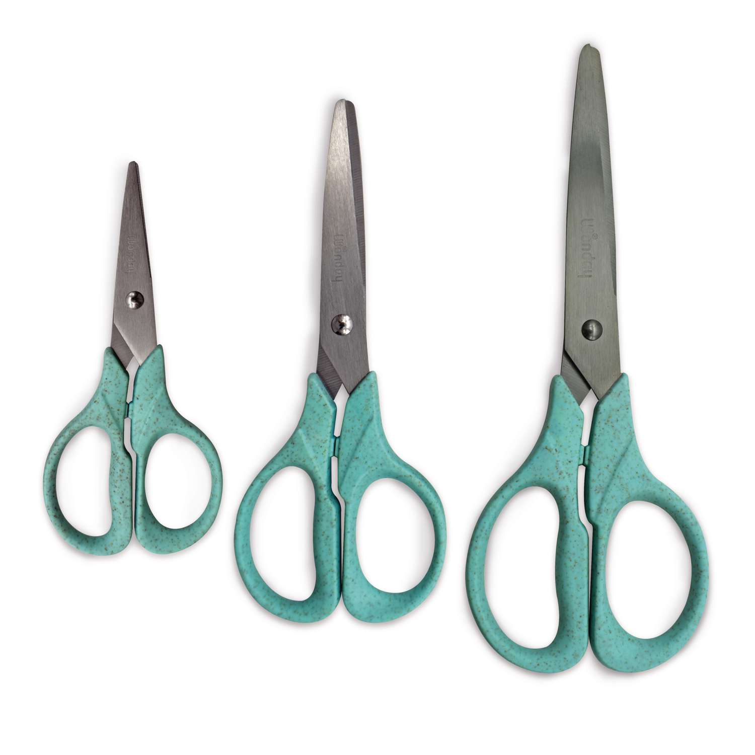 Die Wonday Schere überzeugt mit ergonomischen, symmetrischen Griffen aus 75 % recyceltem PP und 25 % Weizenfasern, die höchsten Komfort und eine umweltfreundliche Materialwahl bieten.