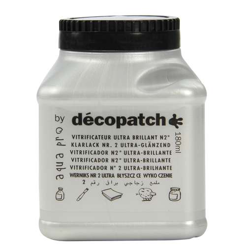 DÉCOPATCH Aquapro Klarlack ist ein geruchsneutraler Lack auf Wasserbasis und in hochglänzend, seidenmatt und matt erhältlich. Der Aquapro-Klarlack macht alle gepatchten Objekte wasser- und wetterfest.
