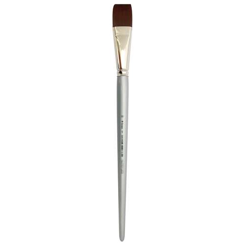 Die flache Form des Pinsels bietet die Vorteile eines gleichmäßigen Farbauftrags und eignet sich ideal für Lasuren, gerade Kanten und ausdrucksstarke Pinselstriche. Entwickelt für Acrylfarben, lässt sich der Pinsel selbstverständlich auch mit anderen Farbmedien verwenden.