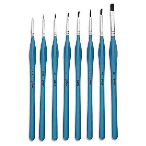 - Inhalt: 8 Pinsel, Größen: Rund (000, 0, 1), Flach (4, 6), Plotter (00, 1, 2)